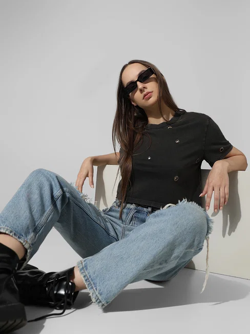 GREY RIVET DETAIL T-SHIRT