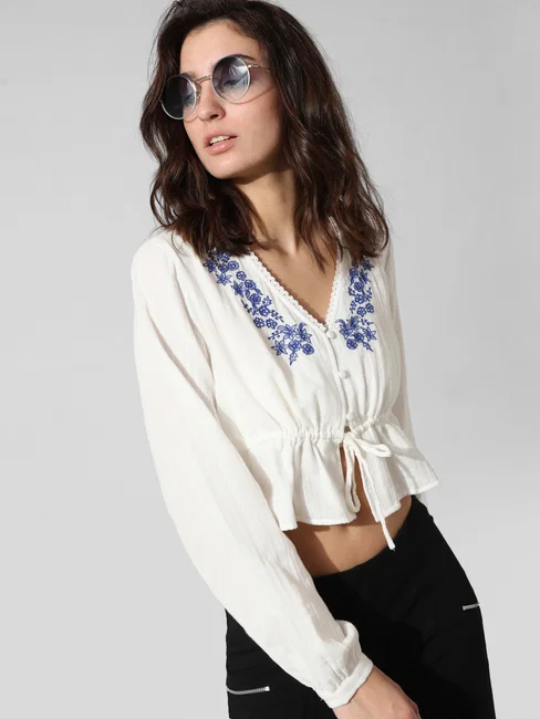 Introducing the Short Top from ONLY, a must-have addition to your wardrobe. This exquisite piece boasts a wrap over front and a V-shaped neckline, complete with a hidden press-stud for a touch of elegance. The smocked waist and frill trim at the hem create a flattering silhouette that is sure to turn heads. With its long balloon sleeves, narrow elastication, and delicate cuffs, this top exudes femininity. It is crafted from premium woven printed fabric, ensuring both comfort and style. The versatile design allows for effortless dressing up or down, making it suitable for any occasion. Pair it with high-waisted jeans and ankle boots for a casual yet chic look that is sure to impress. Alternatively, dress it up with a midi skirt and heels for a more formal ensemble, perfect for those special occasions.